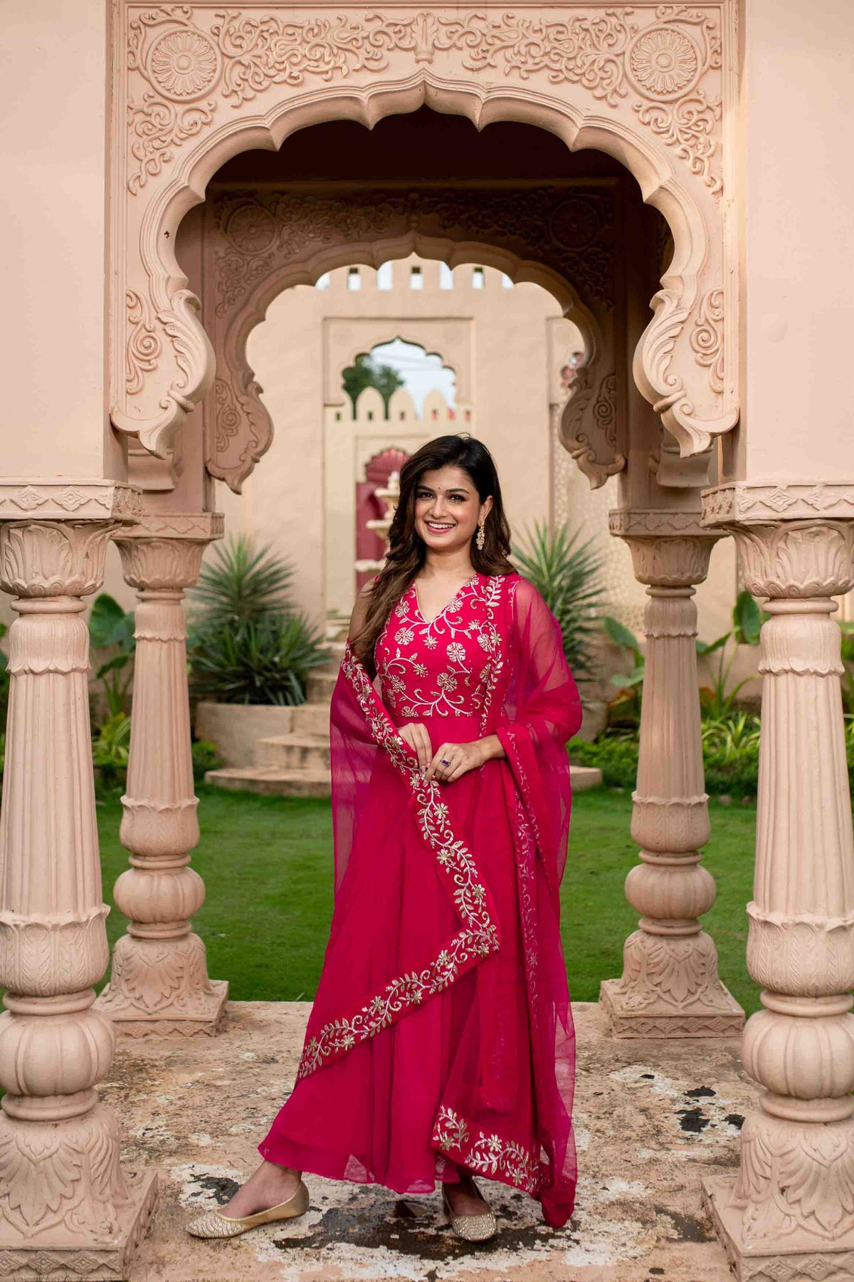 Pink And Gold Anarakli Set