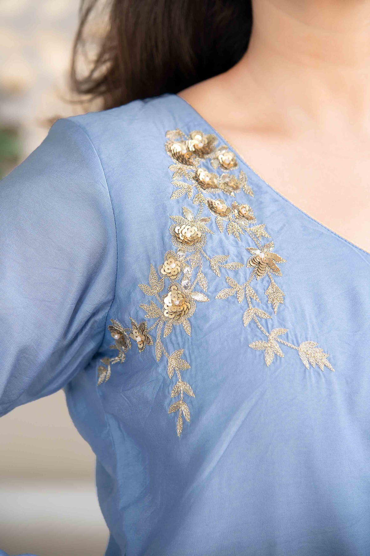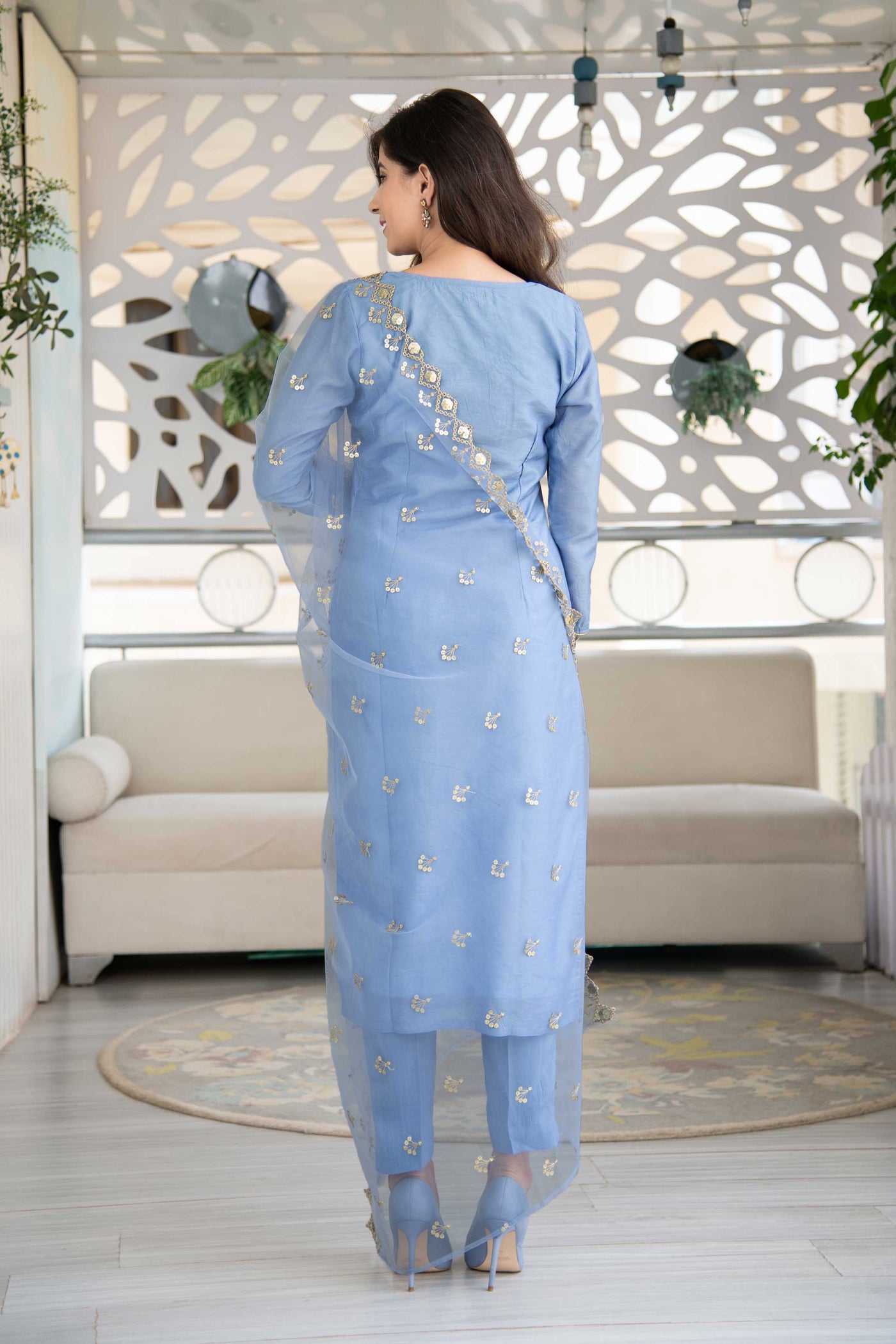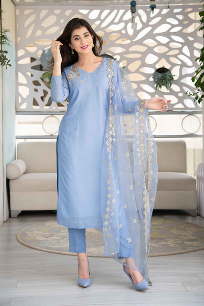 Powder Blue Embellished Kurta Set