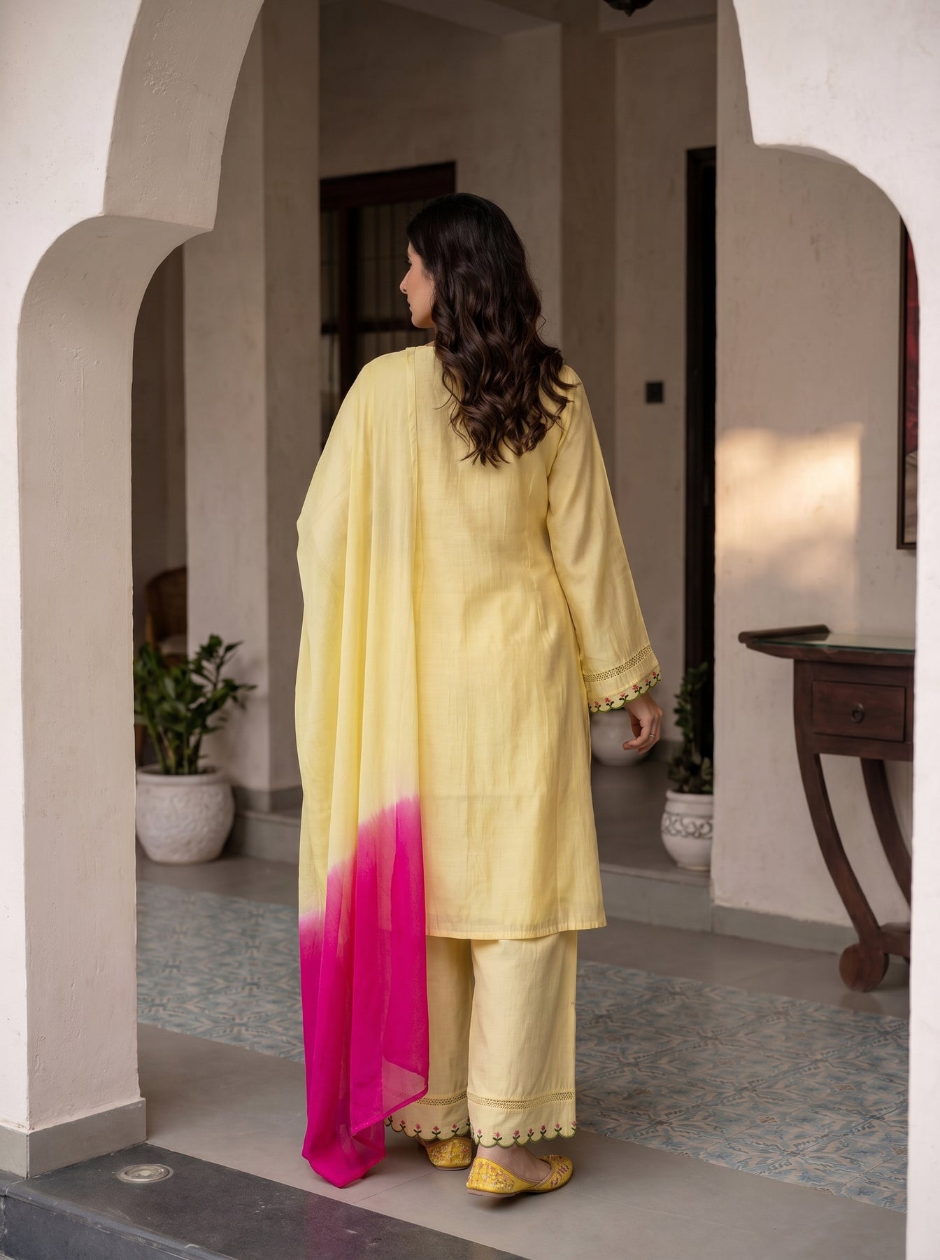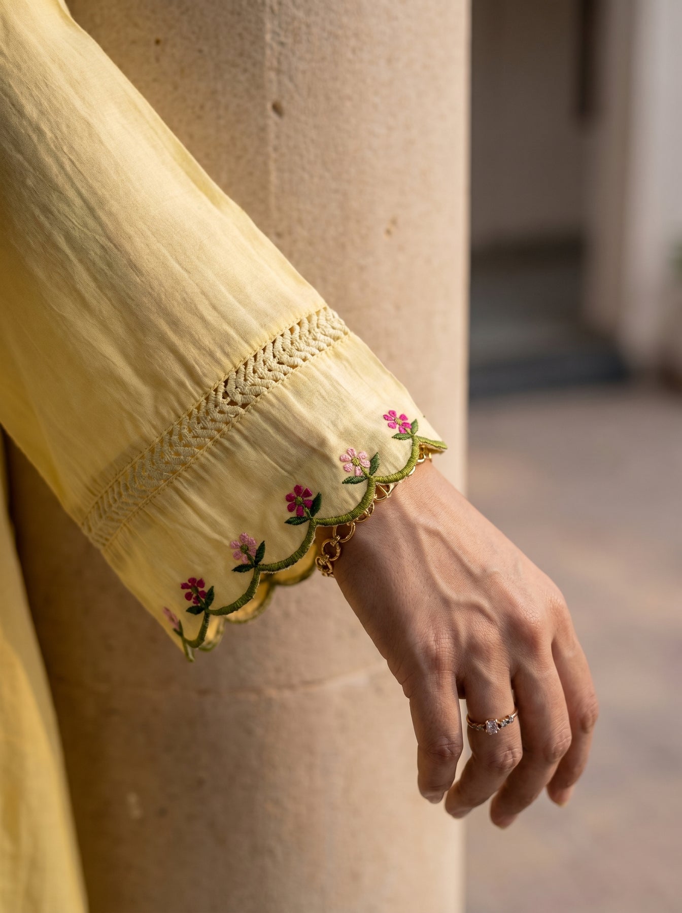 - Flattering Butter Yellow and Pink kurta set silhouette