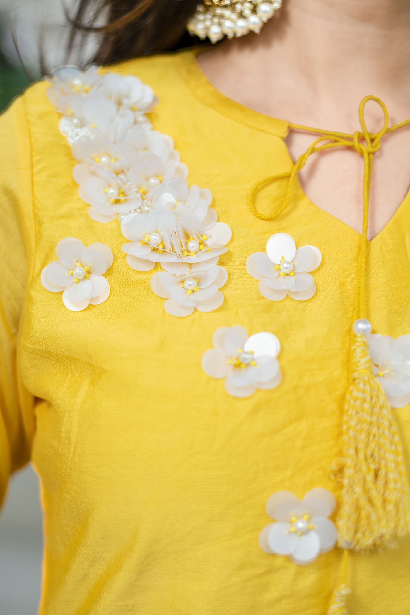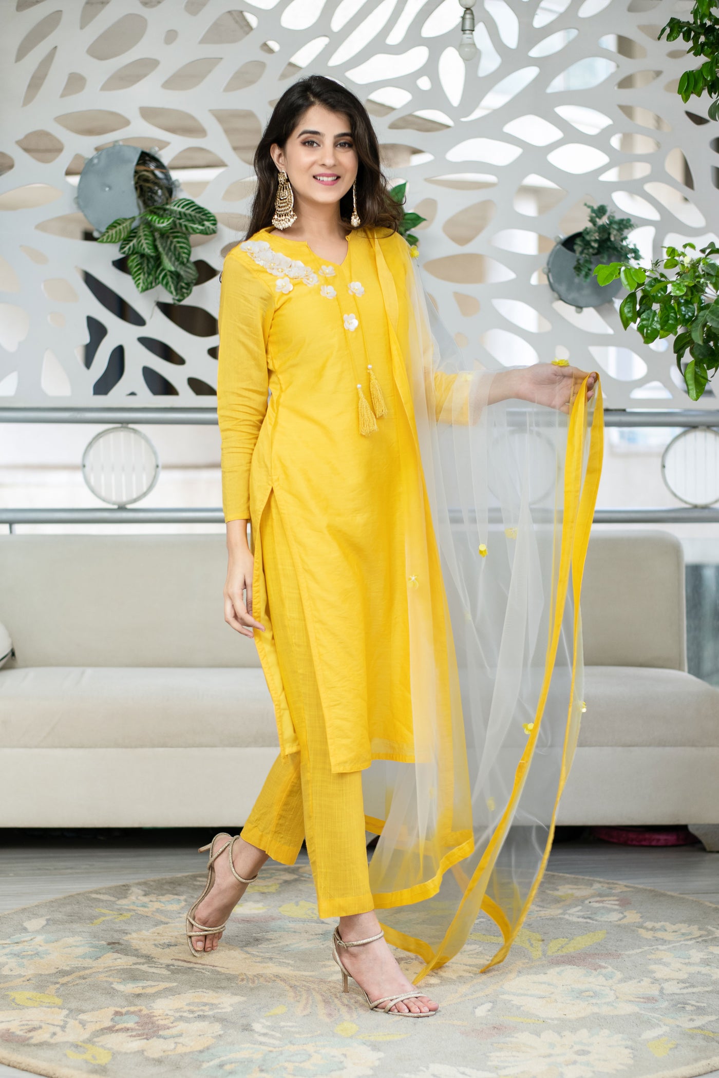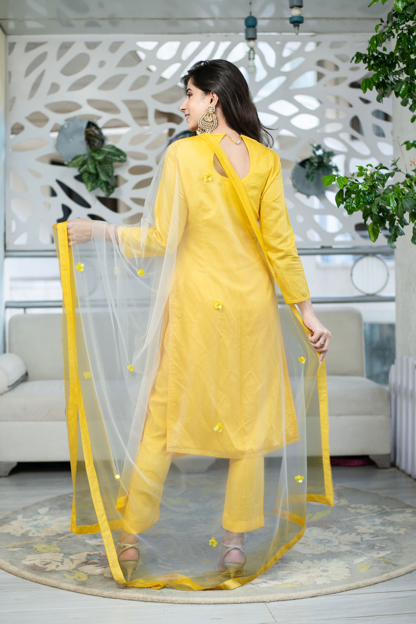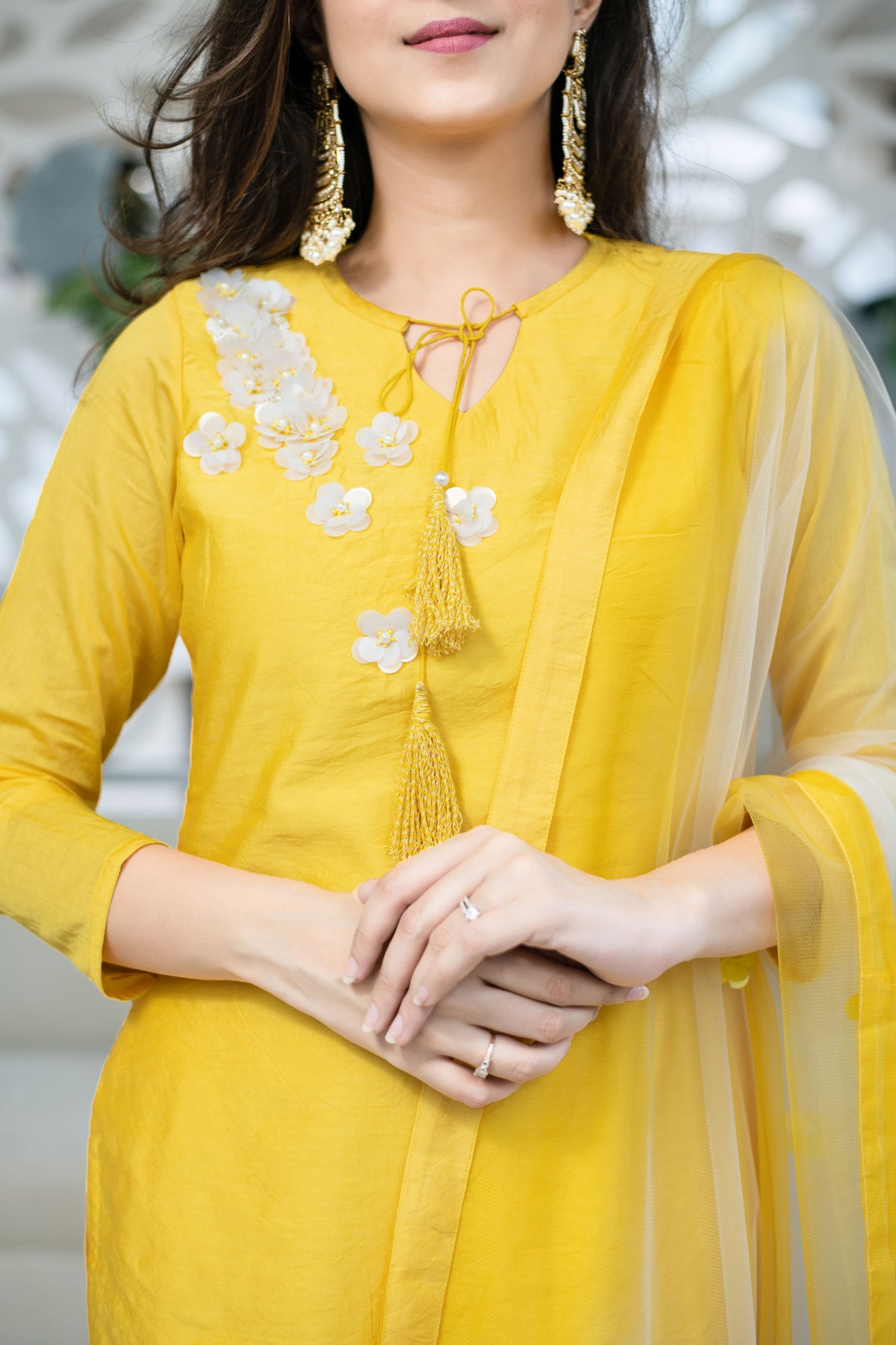 Yellow Chanderi Hand Work Kurta Set